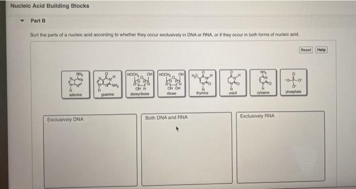 Solved Nucleic Acid Building Blocks Part B Sort The Parts Of Chegg Com
